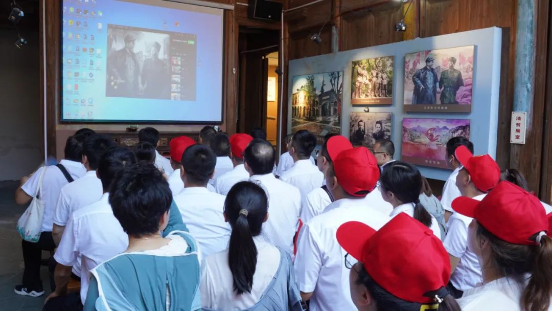 參觀完舊址,全體黨員走進(jìn)紅色文化展館,參觀了葉挺生平展室、英烈展室、清貧展室等。大家集體觀看了紅色電影《中國(guó)將帥 葉挺》,齊唱了《沒有共產(chǎn)黨就沒有新中國(guó)》,誦讀了葉挺將軍在獄中寫下的《囚歌》,感受革命先輩們奮不顧身、頑強(qiáng)拼搏的獻(xiàn)身精神,并與之共鳴。