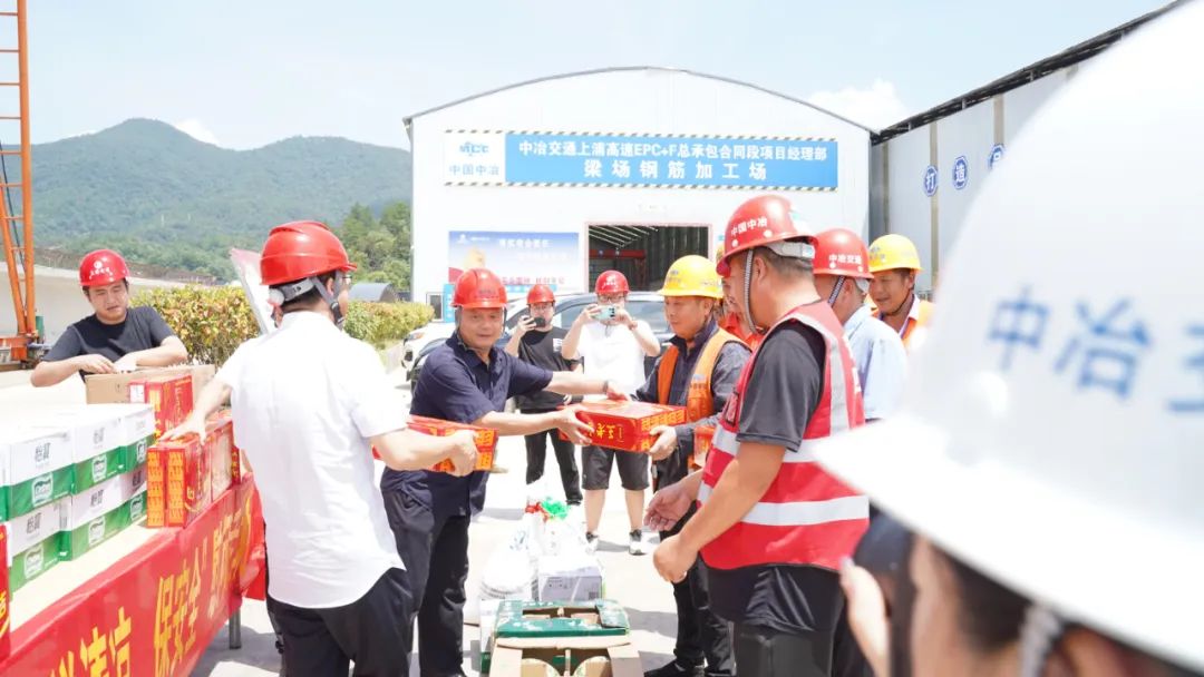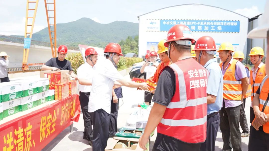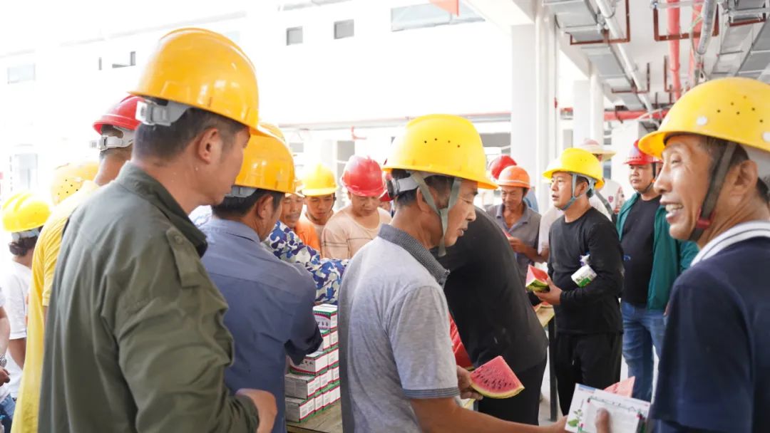 在項目現(xiàn)場,余祖華深入了解一線工友們生產(chǎn)生活情況,向在酷暑中堅守崗位的一線工友們致以誠摯的慰問和衷心的感謝,并將消暑用品、防暑降溫藥品等送到工友代表的手中,叮囑工友們注意休息,保重身體,做好高溫防暑防護。