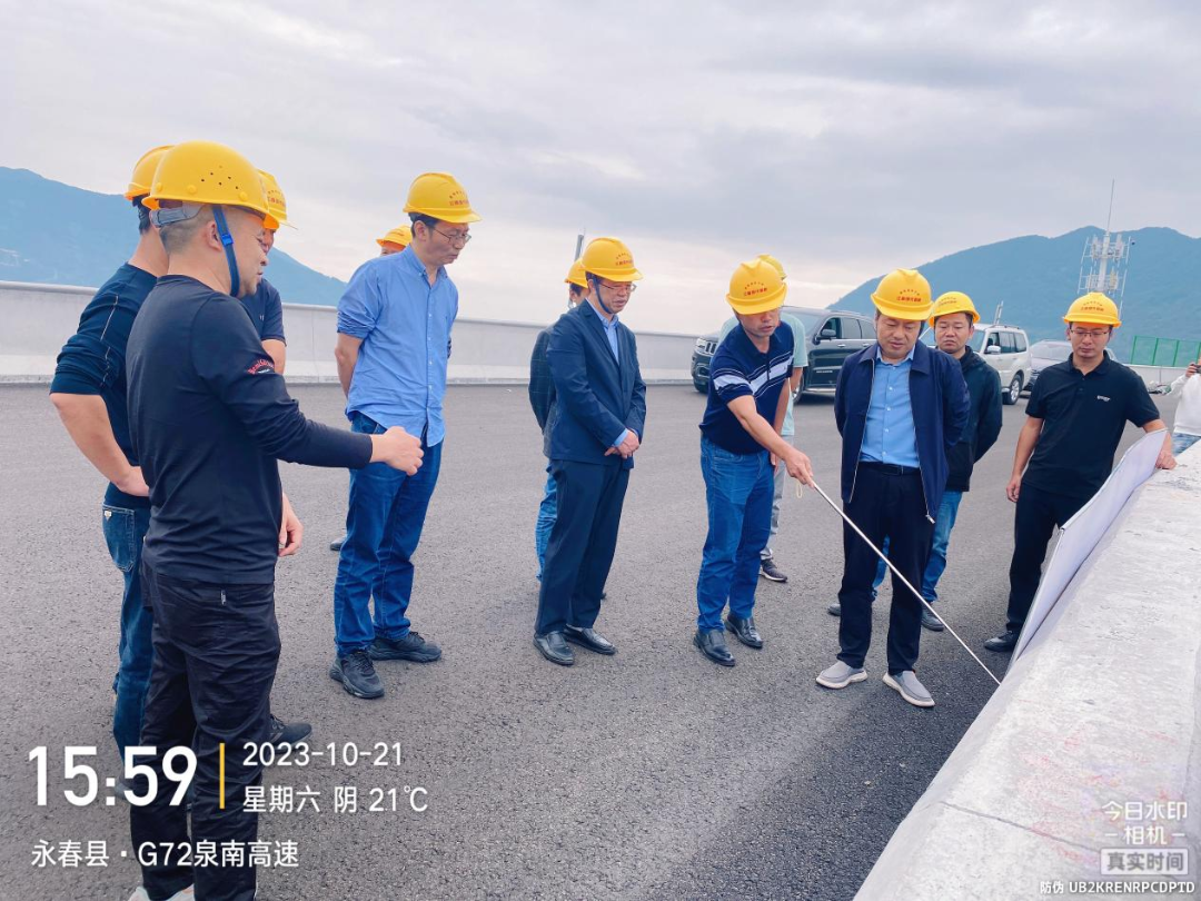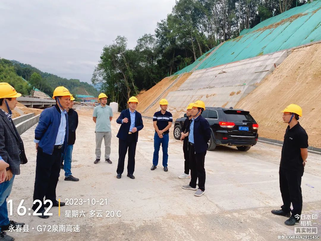 2023年10月21-22日,市國發(fā)集團(tuán)黨委書記、董事長余祖華帶隊深入泉南高速A1合同段實地調(diào)研,集團(tuán)黨委委員、副總經(jīng)理李鵬、黃志強(qiáng)和集團(tuán)戰(zhàn)投部部長譚定勝及現(xiàn)代路橋公司肖祥松、黃嘉煒等陪同。